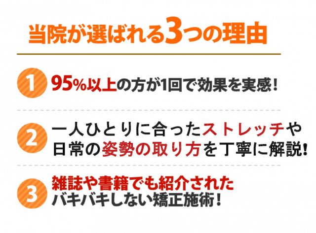 矯正と言ってもバキバキしたり痛い施術ではなく、イタ気持ち良い刺激で体を動かしたりトリガーポイントというツボの様な治療点にアプローチする事によって、硬くなった筋肉を緩め骨をゆっくりと正常の位置に戻していきます。